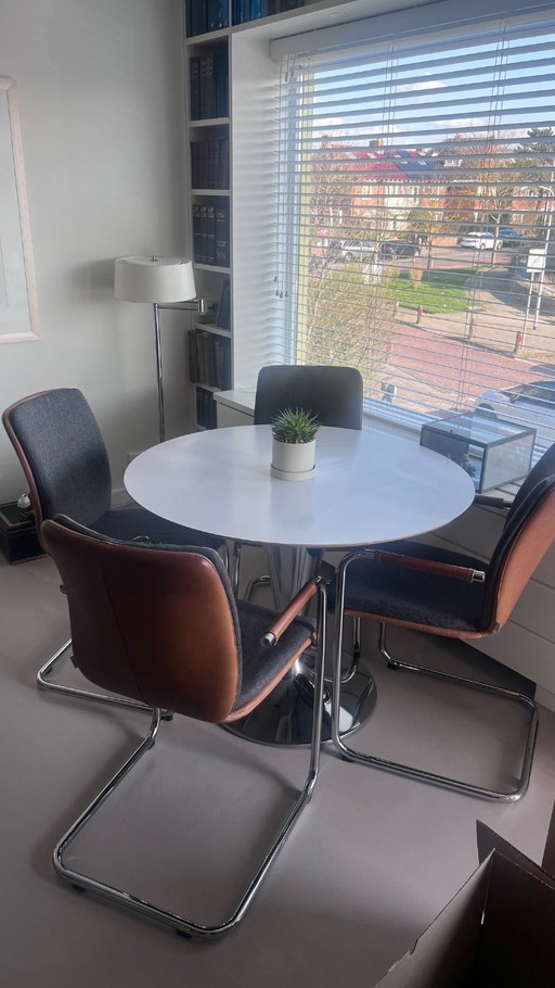 6 sedie di design Bert Plantagie Flip style in pelle nera e acciaio inossidabile6 sedie di design Bert Plantagie Flip style in pelle nera e acciaio inossidabile