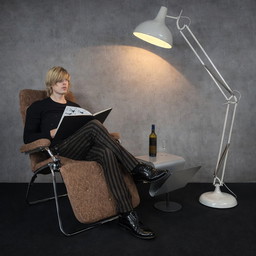 Grande lampada da terra bianca regolabile in metallo vintage industriale
