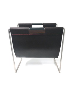 Dutch Design - Brabantia Holland - Set Mime - Portariviste - Tavolino vintage con portariviste in pelle color cognac - Anni &#39