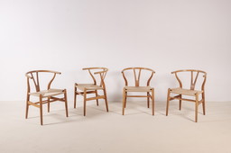 4 sedie Wishbone CH24 di Hans J. Wegner in rovere, anni '60, Danimarca