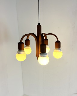 Lampada a sospensione Domus in legno di teak vintage