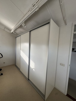 Armadio bianco per vestiti e contenitori con ante scorrevoliArmadio bianco per vestiti e contenitori con ante scorrevoli