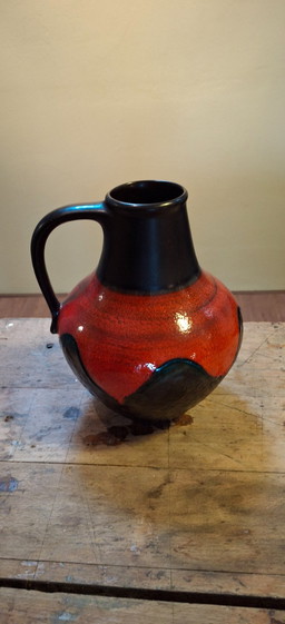 Rarità! Grande vaso d'epoca Dümler&Breiden, modello 313/50, brocca in ceramica lavica rossa-blu con manico