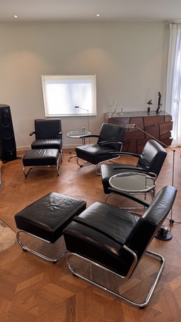 Gispen 405 | cromo lucido | pelle nera | come nuovoGispen 405 | cromo lucido | pelle nera | come nuovo