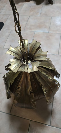 Lampada a sospensione brutalista in ottone Svend Aage Holm Sørensen 1960Lampada a sospensione brutalista in ottone Svend Aage Holm Sørensen 1960
