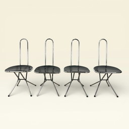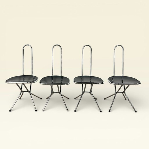 4 sedie vintage Ted, sedie pieghevoli in acciaio Niels Gammelgaard anni ottanta4 sedie vintage Ted, sedie pieghevoli in acciaio Niels Gammelgaard anni ottanta