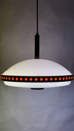 Lampada a sospensione vintage a forma di UFO gigante - Design arancione anni '70, stile era spaziale.