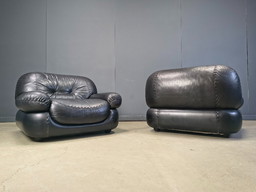 Set di poltrone P40 in pelle nera di Sapporo per Mobil Girgi, anni '70