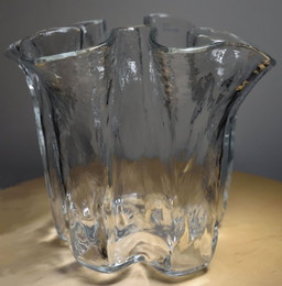 Vaso in vetro artistico scandinavo anni '70 Muurla "Eva", fazzoletto di ghiaccio trasparente arricciato
