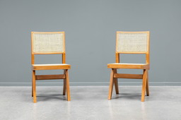 Set di 8 sedie da ufficio in canna Pierre Jeanneret, India anni '50