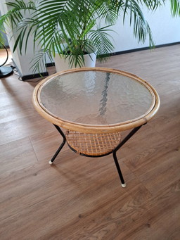 Tavolino di metà secolo in bambù, metallo e vetro - Paesi Bassi, anni '60