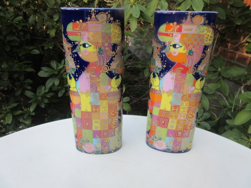 Coppia di vasi vintage chic Dorothy Hafner Rosenthal, Germania, anni '80, stile Memphis