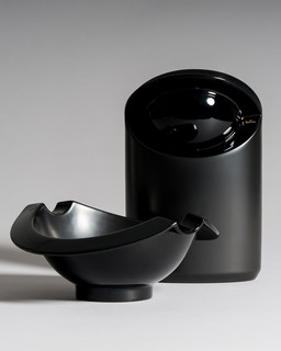 Jan van der Vaart per Rosenthal Studio-Line "Nautica", duo di vasi e ciotole in porcellana nera, serie Porcelaine Noir