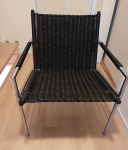 Poltrona Spectrum SZ 01, metallo cromato, vimini neroPoltrona Spectrum SZ 01, metallo cromato, vimini nero