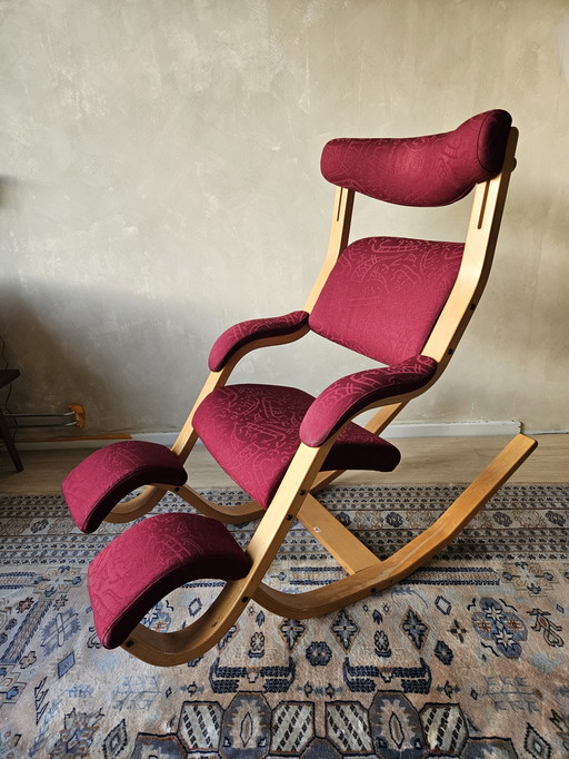 Peter Opsvik - Stokke - Pendulum - Sedia a dondolo dalla forma ergonomica - Rivestimento in velluto rosso e struttura in legno