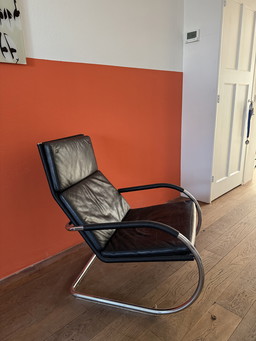 Icona del design: poltrona lounge Tecta D35 - Pelle nera e cromoIcona del design: poltrona lounge Tecta D35 - Pelle nera e cromo