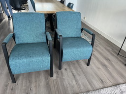2 Poltrone Grandola, Tessuto/Pelle Turchese/Betrol/Nero