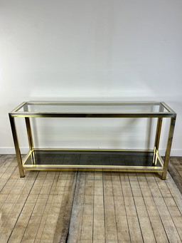 Consolle Willy Rizzo in metallo cromato e ottone dorato anni '70