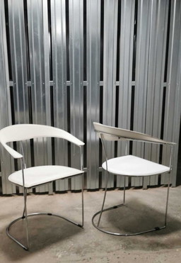 Paul Falkenberg x Rom AG - Sedia lounge "Chili" in pelle bianca e acciaio cromato - 1985 circa - Belgio