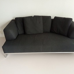 Divano 2,5 posti di B&B Italia con rivestimento in tessuto color antracite e base in acciaio inox.