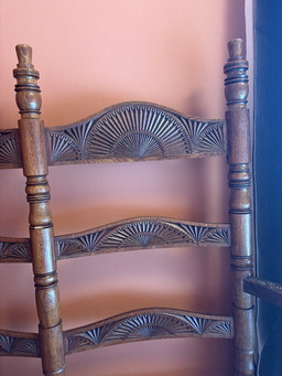 Antica panca a due posti in legno massello intrecciato con intaglio in legno frisone