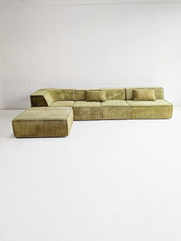 Divano modulare vintage in velluto verde muschio