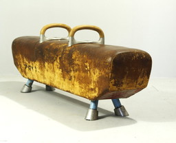Panca da palestra vintage in pelle con cavallo a maniglie, anni '60