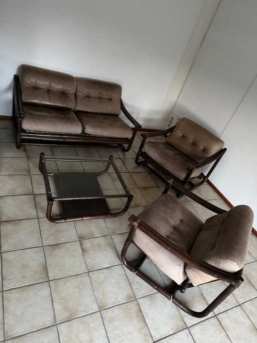 Set divano in bambù, composto da divano e 3 poltrone.