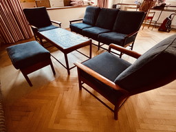 Divano Holstebro di design danese di metà secolo, come nuovo, + 2 poltrone, teak massello, lana vergine di prima qualità, condiz