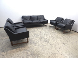Leolux Bora Beta Set di divani in pelle nera Divano a 2,5 e 2 postiLeolux Bora Beta Set di divani in pelle nera Divano a 2,5 e 2 posti