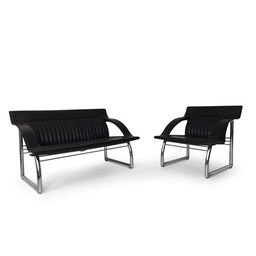 Gruppo di sedute moderniste in vinile nero e metallo, Danimarca anni '60