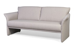 Comodo divano in pelle di pecora da 2,5 posti con cuscini in tessutoComodo divano in pelle di pecora da 2,5 posti con cuscini in tessuto