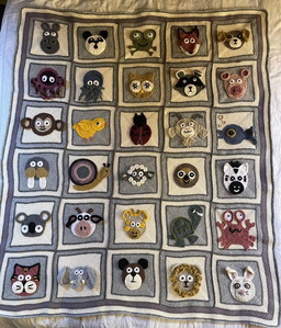 Coperta di animali all'uncinetto fatta a mano 16 quadrati