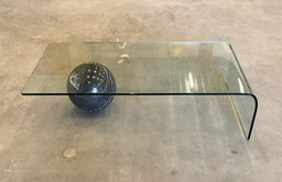 Tavolino da caffè in vetro curvato e marmo Giorgio Cattelan
