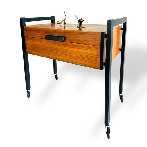Tavolino da cucito vintage in teak su rotelle Metà secolo