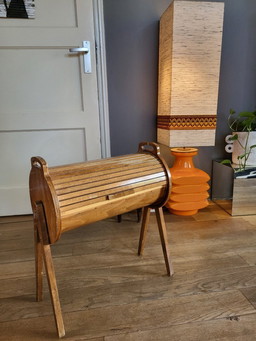 Tavolino laterale con cassettiera porta coperte e mobile contenitore retrò