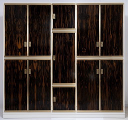 Armadio in ottone e noce di Luciano Frigerio, anni Settanta, della modernità di metà secolo.