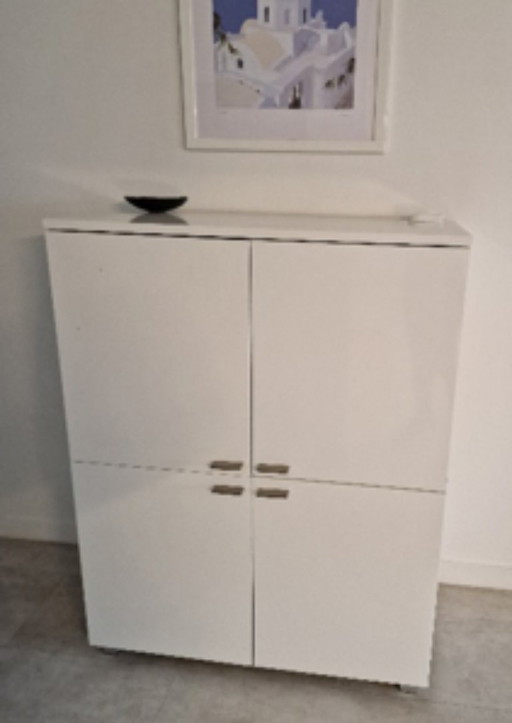 Mobiletto portaoggetti a 4 ante in soggiorno, ufficio o cucinaMobiletto portaoggetti a 4 ante in soggiorno, ufficio o cucina