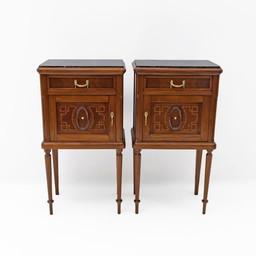 Coppia di comodini in stile Luigi XVI con intarsi e piano in marmo, Italia, anni '20