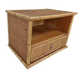 Antico mobiletto francese (comodino) con impiallacciatura in noce e ottone