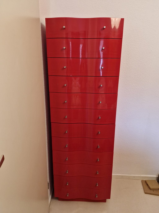 Cassettiera rossa lucida