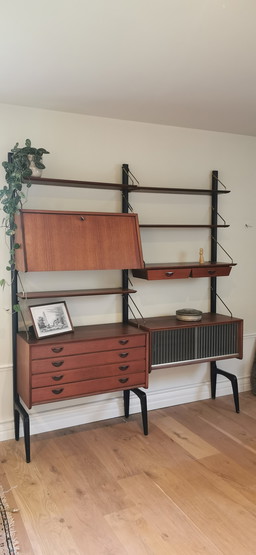 Sistema a parete Poul Cadovius; 1 mobile, 4 montanti e 10 ripiani