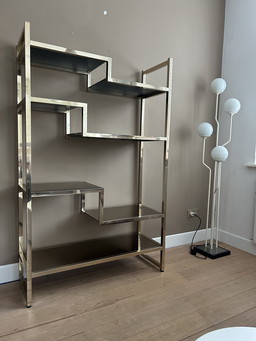 Scaffali Etagère in ottone e vetro fumé italiani del XX secolo, anni '70