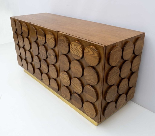 Mobile bar brutalista italiano in legno di castagno e ottone, anni '70Mobile bar brutalista italiano in legno di castagno e ottone, anni '70