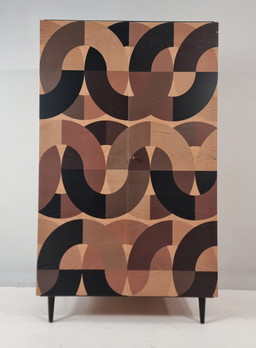 Credenza anni '50 mobile laterale a 2 ante, con motivo stile Mondrian, Mid Century Modern