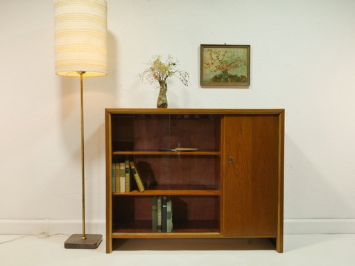 Libreria vintage anni '50, vetrina di metà secolo, impiallacciatura di rovere, ante scorrevoli in vetro, Cabinet Germany