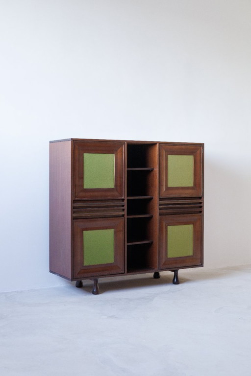 Mobile antico con finestre in vetro verde