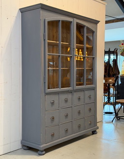 Vetrina grigia con ante in vetro e 12 cassetti | Mobile buffetVetrina grigia con ante in vetro e 12 cassetti | Mobile buffet