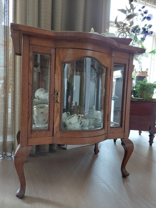 Antieke klassieke vitrinekast, servieskast, whiskeybar, wijnkast met afneembaar dienblad afm: 79x53cm en 80cm hoog.