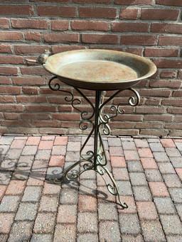 Bagno per uccelli in metallo rustico / mangiatoia per uccelli su supporto